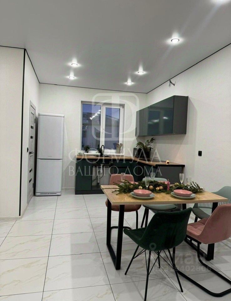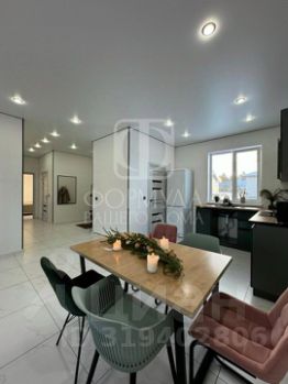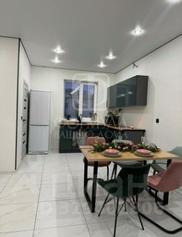 На полу керамогранит, межкомнатные двери, натяжные потолки со светильниками, в санузле плитка, в котельной котел, водонагреватель.