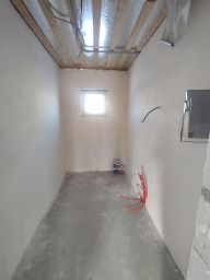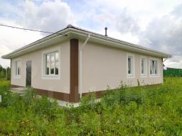 Дом с отделкой под чистовую, на полу полусухая стяжка с утеплением 50мм, стены оштукатурены.