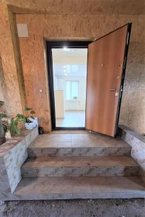 В доме две комнаты 21 и 12 кв.м. и просторная кухня - столовая 20 кв.м., санузел. Везде натяжные потолки, пластиковые окна, на полу в маленькой комнате ламинат, в остальных линолеум, два шкафа-купе, в санузле кафель, Вода из скважины, есть летний водопровод, канализация, газовый и электрический котел, также есть компактная печь.