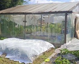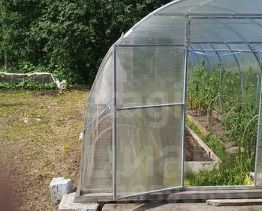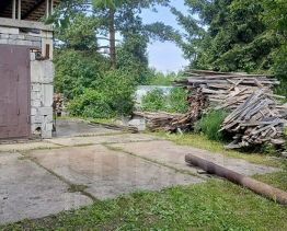 Участок благоустроен: 60% забора из профлиста установлено в 2025 году, предусмотрены ворота и калитка с закладной под откатные ворота. На территории расположен железобетонный гараж 48 м с двухуровневой планировкой, подходящий для хранения автомобиля или организации овощехранилища. Крыша гаража обновлена в 2024 году, к нему пристроен капитальный хозблок 64 м для инвентаря. Имеется дровяник на фундаменте объемом 12 м с запасом дров, две теплицы (поликарбонатная 83 м и стеклянная), а также котлован 66 м под будущую баню с завезенными ФБС-блоками. Часть участка вымощена бетонными плитами, высажены плодово-ягодные культуры.