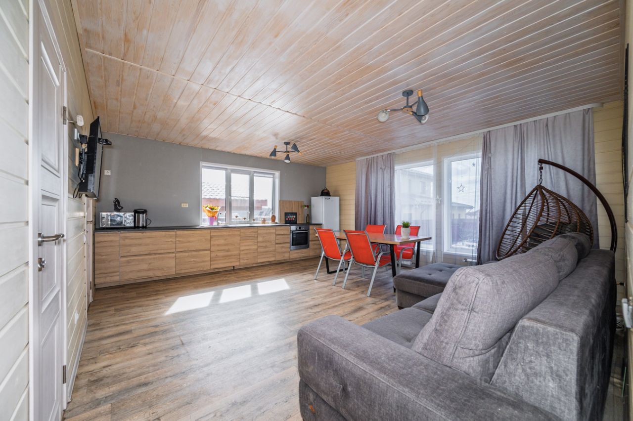 Дом 116,2 м2 Жилая площадь 50м2 Материал: стены брус, утепление минватой 100мм, фасад - сайдинг. Крыша утеплена минватой 200мм. Отопление электрическое: теплые полы по первому этажу, батареи отопления на втором и первом этаже. Газовая труба по границе участка, есть возможность подключения к газовому снабжению. Переливной септик три отсека. Скважина 65 м. с питьевой водой. Первый этаж: кухня - гостиная (все коммуникации подключены), две спальни, современный санузел, большой шкаф-купе, погреб для хранения овощей. Второй этаж: две спальни. Санузел. Встроенные шкафы.