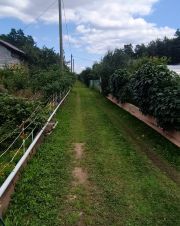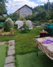Участок правильной формы, разработан и ухожен, находится в середине сада. С двух сторон лес. Земля плодородная - много насаждений - клубника, малина, смородина, крыжовник, вишня, груша, облепиха, 4 яблони. Есть не большой парник для огурчиков.