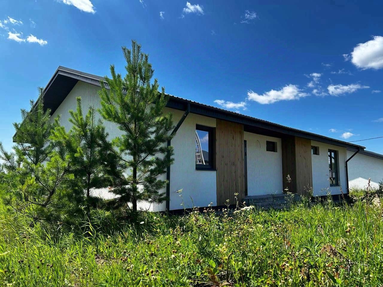 Дом встречает вас изысканным фасадом, выполненным в благородной палитре: белоснежная декоративная штукатурка гармонично сочетается с элегантными деревянными вставками, которые украшают дом по всему периметру. Этот утончённый дуэт создаёт неповторимый архитектурный облик, придавая фасаду особый шарм и индивидуальность. Надёжная металлочерепица защищает дом от любых погодных условий, а высокие потолки создают ощущение простора и свободы.