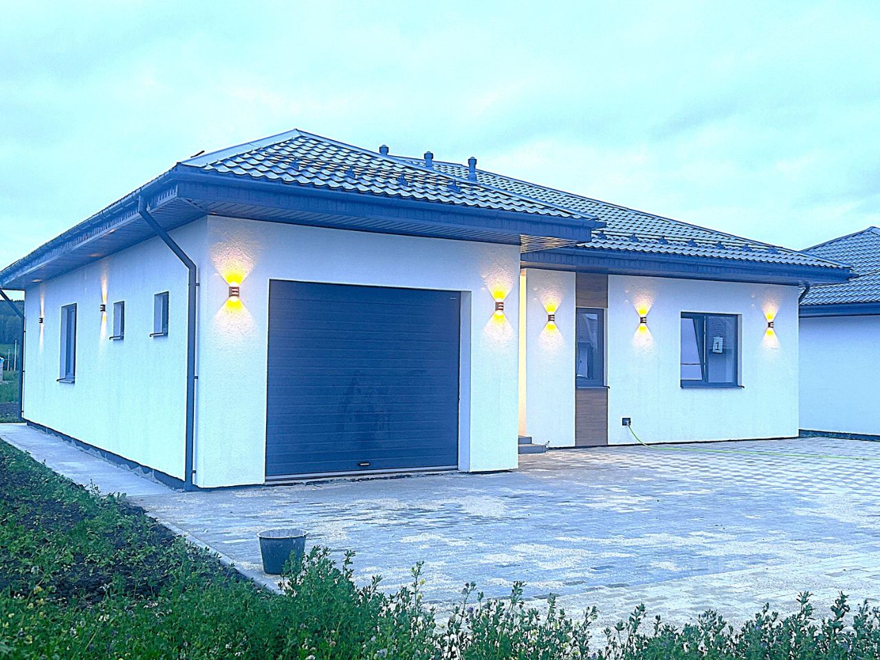 Внутри дома, три санузла — с различным функционалом, целых три спальни, гостям не будет тесно в вашем доме! Впрочем, внутреннюю архитектуру можно легко поменять по своему желанию.