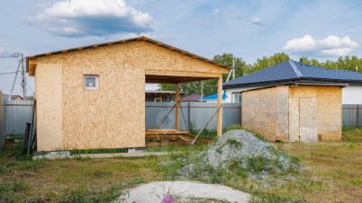 На участке начато строительство бани по каркасной технологии, вложено 700тр, готова на 80%: осталось сделать внутреннюю обшивку и внешнюю отделку, сделать настил для пристроенной веранды.