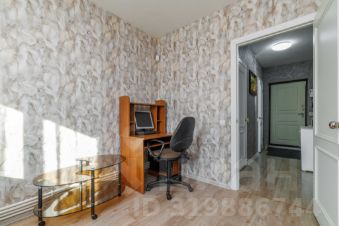 В маленькой комнате диван и рабочий стол.