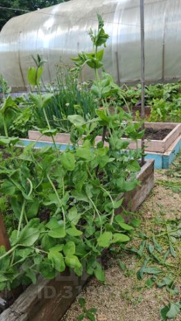 Зона отдыха удачно отделена от зоны выращивания овощей и зелени.