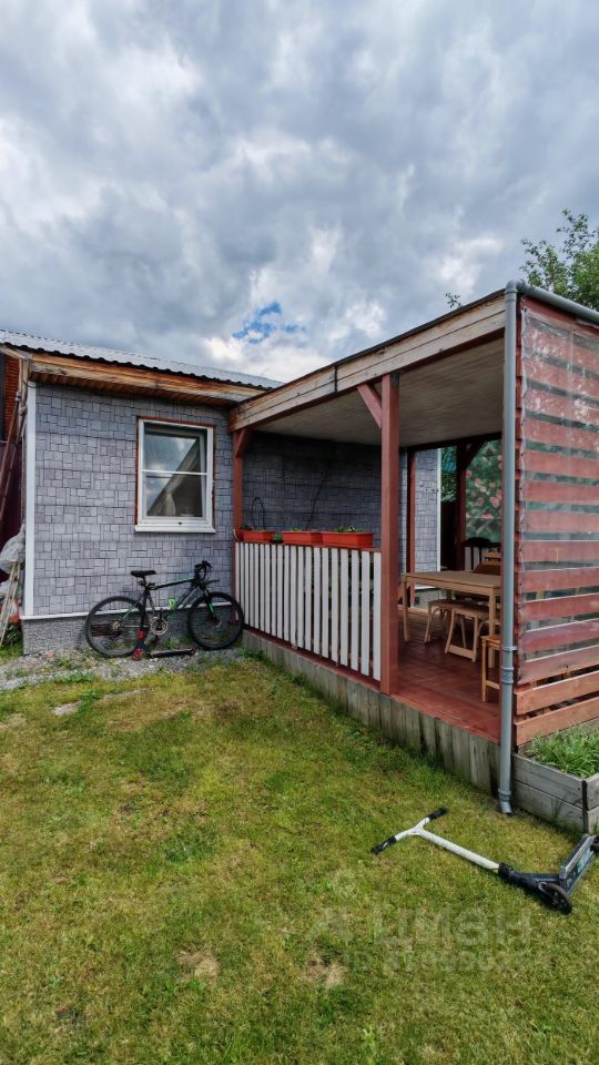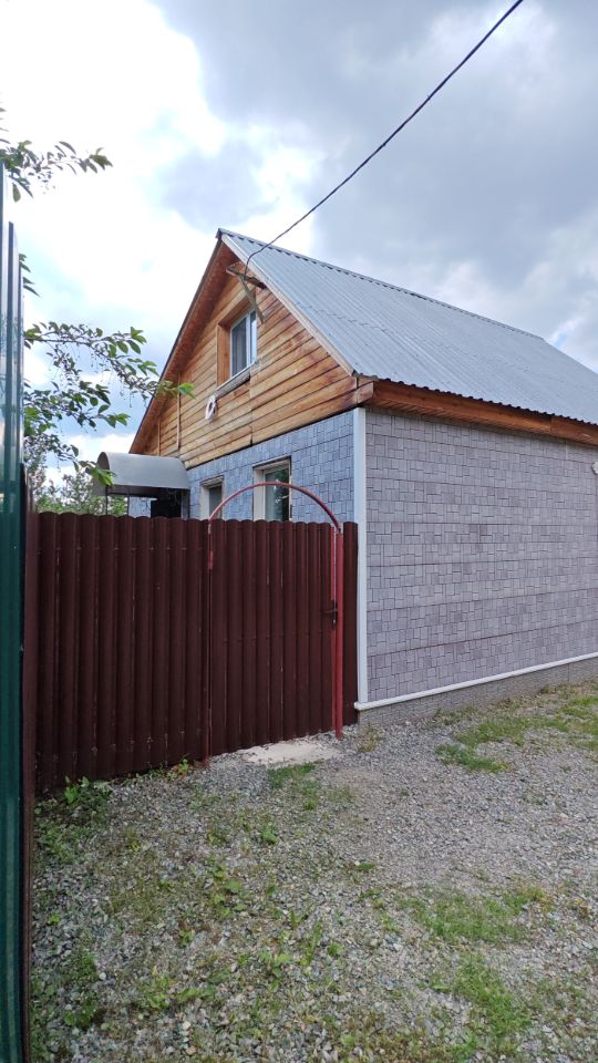 Дом выстроен из бруса и бревен, обшит фасадными панелями.