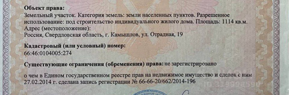 Кадастровый номер участка 66:46:0104005:*** указал продавец