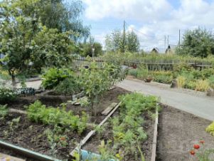 На территории установлен металлический, добротный гараж, электричество проведено. Рядом есть ещё парковочное место. Участок разработан и ухожен. 3 теплицы из поликарбоната. Сарай под инструменты. Множество плодоносящих деревьев и кустарников (яблоня, груша, вишня, малина и т.д.)
