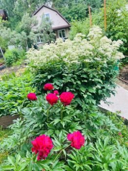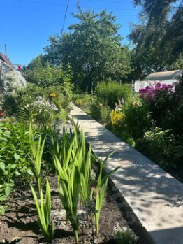 Участок ровный, земля плодородная, по границам огорожен, разработан, есть множество плодоносящих кустов, деревьев и цветов: