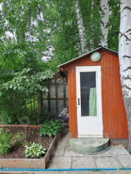 - уютный 2-х этажный дом из бруса, на первом этаже расположены веранда-кухня и большая комната размером 4,2 х 6, на втором этаже просторная спальня 18 кв.м.