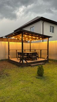 •Беседка с подстветкой и место под бассейн с домиком для системы фильтрации бассейна. Уже выведены точки воды и электричесва по всему участку.