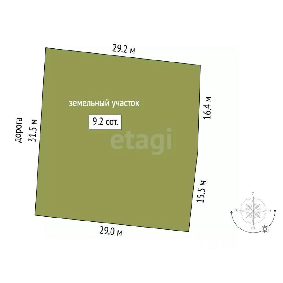 Участок площадью 9 соток, предоставляя возможности для садоводства или дальнейшего благоустройства.