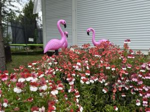 Имеются 2 хозпостройки для садового инструмента и застекленная зона для отдыха.