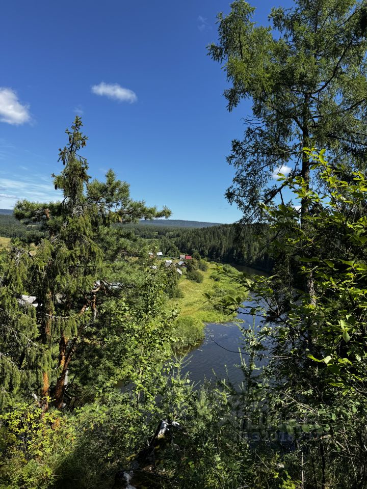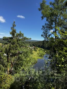 Участок видовой, с этого места открывается очень красивый вид на реку, скалы и другой берег села. Участок крайний, вместо соседей - выход в еловый лес. Участок находится при въезде в село.