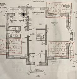 На первом этаже кухня гостиная - 44 кв.м.+ кухня - 17 кв.м., комната, сан.узел, техническая комната, веранда.