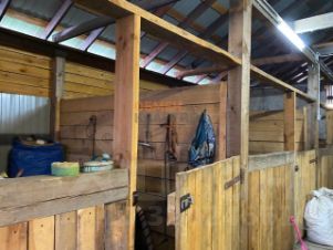 На участке есть строение - бывшая конюшня, которую при строительстве дома можно использовать как временное помещение. Конюшня большая, 15 клеток, каждая 3м х 2м. На конюшне и внутри установлены видеокамеры, есть датчики движения.