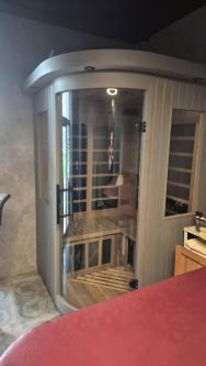 Во всем доме водяные теплые полы. Газовая котельная (котел VIESSMANN) и резервным электрическим котлом. Просторный отапливаемый гараж с автоматическими подъёмными воротами HORMANN. СПА зона с душем и хамамом, инфракрасная сауна, 5 местным джакузи.