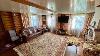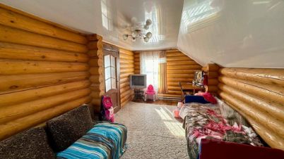 Просторный двухэтажный коттедж из бревна расположен на большом земельном участке в тихом и уютном поселке Новоуткинск.