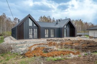 Дом в стиле барнхаус сочетает в себе простоту формы, новые строительные технологии и современное видение архитекторов. Акцент фасада - витражное остекление. Дом обращен в сторону природного ландшафта: в сторону леса и реки.