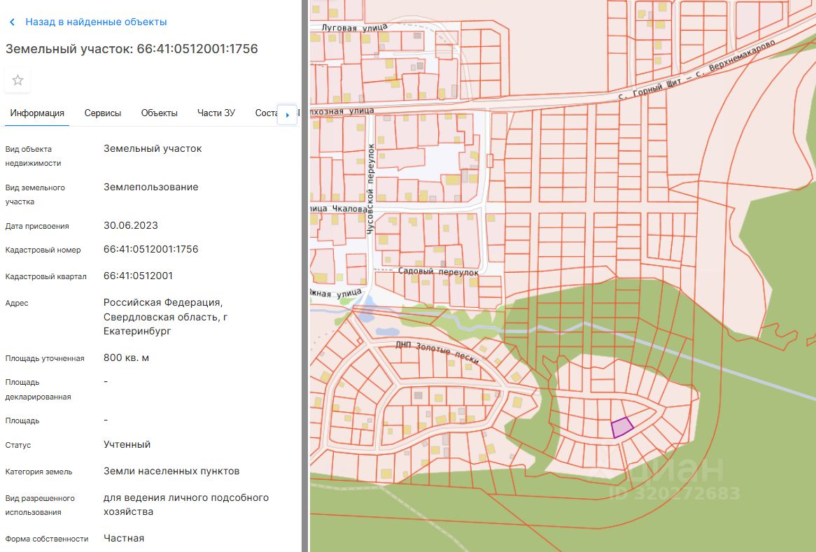 Кадастровый номер участка 66:41:0512001:*** указал продавец