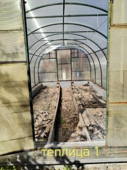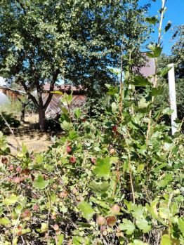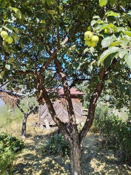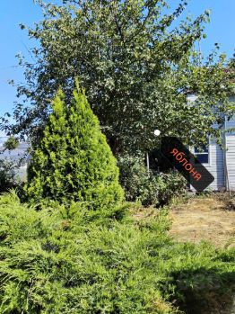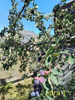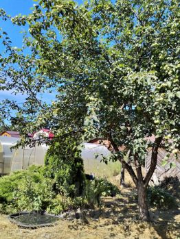 Сейчас на участке ничего не выращивается, кроме того, что растет само. Сорняк убирается. Есть старенький летний домик (три комнатки+пристроенная летняя кухня). Две теплицы. 10 грядок (на одной из них сейчас растут пионы). Яблоня, две ирги. Жимолость, красная и белая смородина, крыжовник, вишня. Две туи, можжевельник, курильский чай.