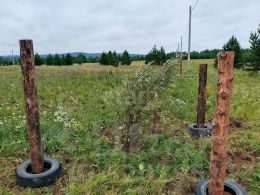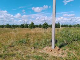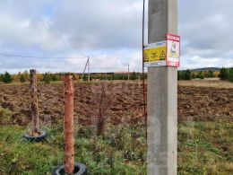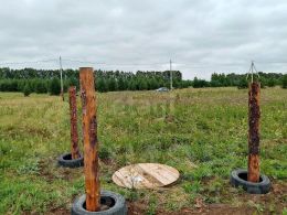 По границам земельного участка установлены столбы для забора. Рядом пруд, за участком - грибные места.