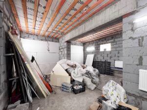 Гараж теплый на две машины с отдельным входом с улицы и из дома, выведены 2 водоразборные точки со стороны гаража для полива, автомойки, подготовлена электрическая часть для подключения ворот, установлено освещение.