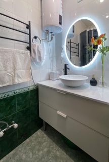Часть мебели остаётся новому владельцу (4 шкафа-купе, огромная оборудованная гардеробная, угловой кожаный диван в гостиной, тумба IKEA в ванной комнате, прихожая).