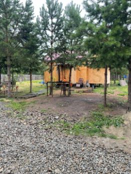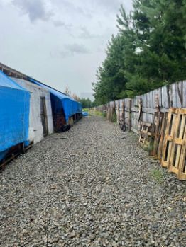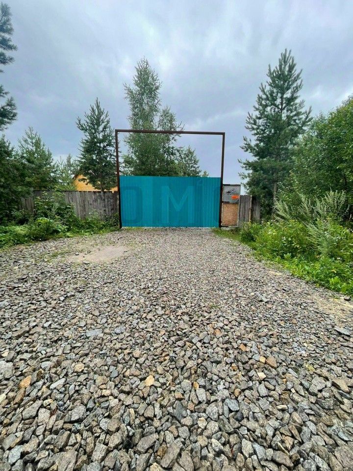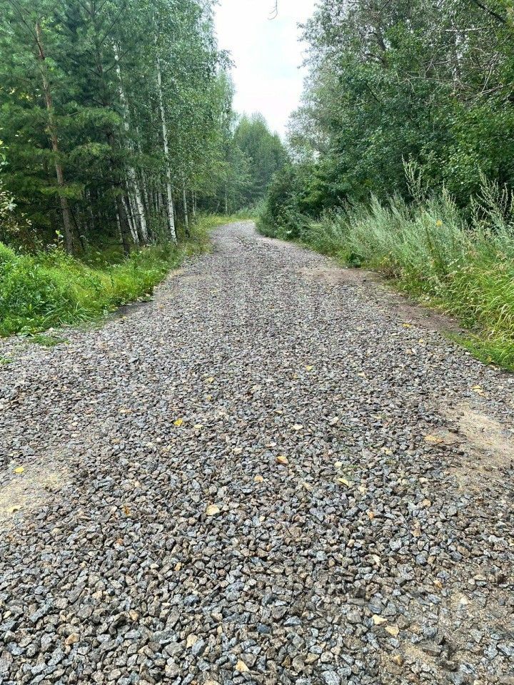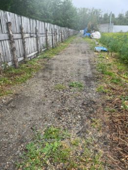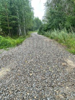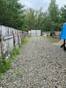 1. Участок полностью огорожен по периметру. Подъезд от основной дороги засыпан щебнем, обеспечивая доступ в любую погоду. Перед воротами оборудованы парковочные места.