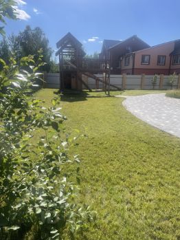 Участок 10 соток (земли ИЖС). По периметру участок огорожен,благоустроен: детская площадка с зимней горкой , дорожки, газоны, наличие фруктовых и ягодных насаждений, цветники, место для хранение садового инвентаря. Место под гараж или навес .