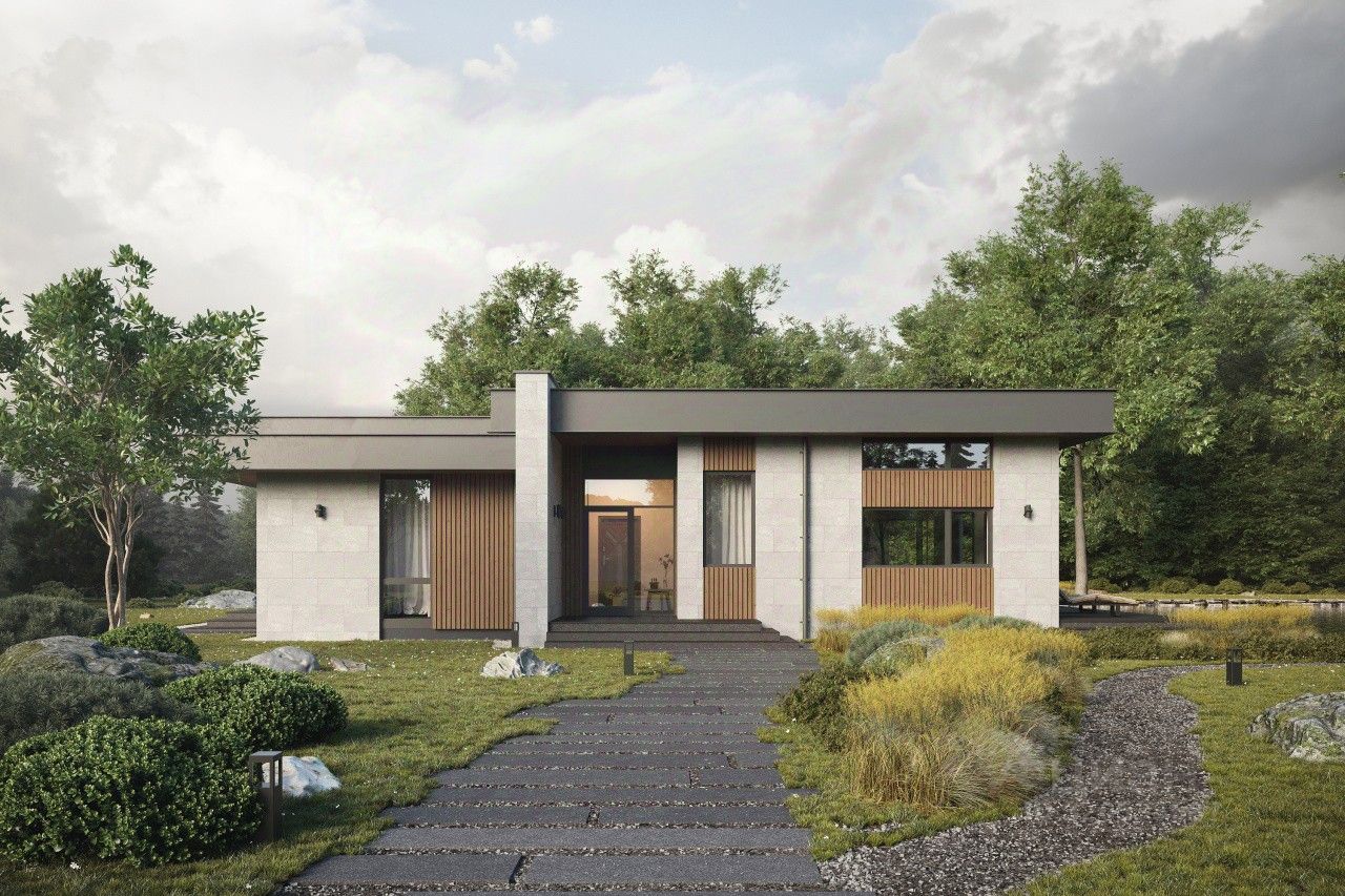 Продаётся современный одноэтажный дом с плоской кровлей на этапе строительства - идеальное жильё для небольшой семьи!