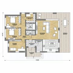 Дом спроектирован для взрослой пары супругов, которые ценят комфорт и функциональность. Уникальный проект учитывает нестандартный узкий вытянутый участок с въездом с юга - гостиная, большая терраса и торцевой вход ориентированы именно на солнечную южную сторону.