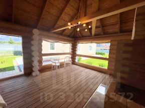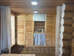Баня из тесанного бревна (диаметр 35-37см), размером 5,5 х 11,5 м., пол и потолок из лиственницы. В баню заведена вода, установлен водонагреватель, предусмотрен отвод отработанной воды. На веранде кирпичная печь с зонами приготовления шашлыков и под казан.