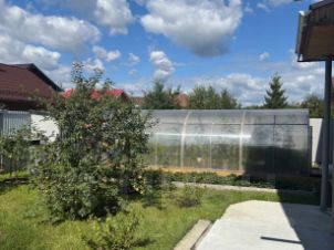 На участке расположены: дом, баня, теплица, бассейн, а также плодовые и декоративные деревья и кустарники.
