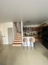 Продается уютный 3х этажный сблокированный дом со своим небольшим участком,огороженной территорией в современном охраняемом развитом поселке "Совушки" в нескольких км от города. Дом в идеальном состоянии с новым косметическим ремонтом.