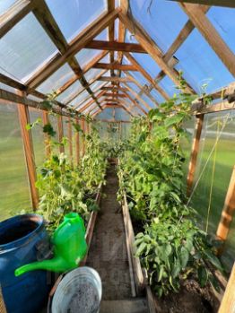 На участке: Баня, скважина, уличный туалет, две теплицы, все насаждения, лес.