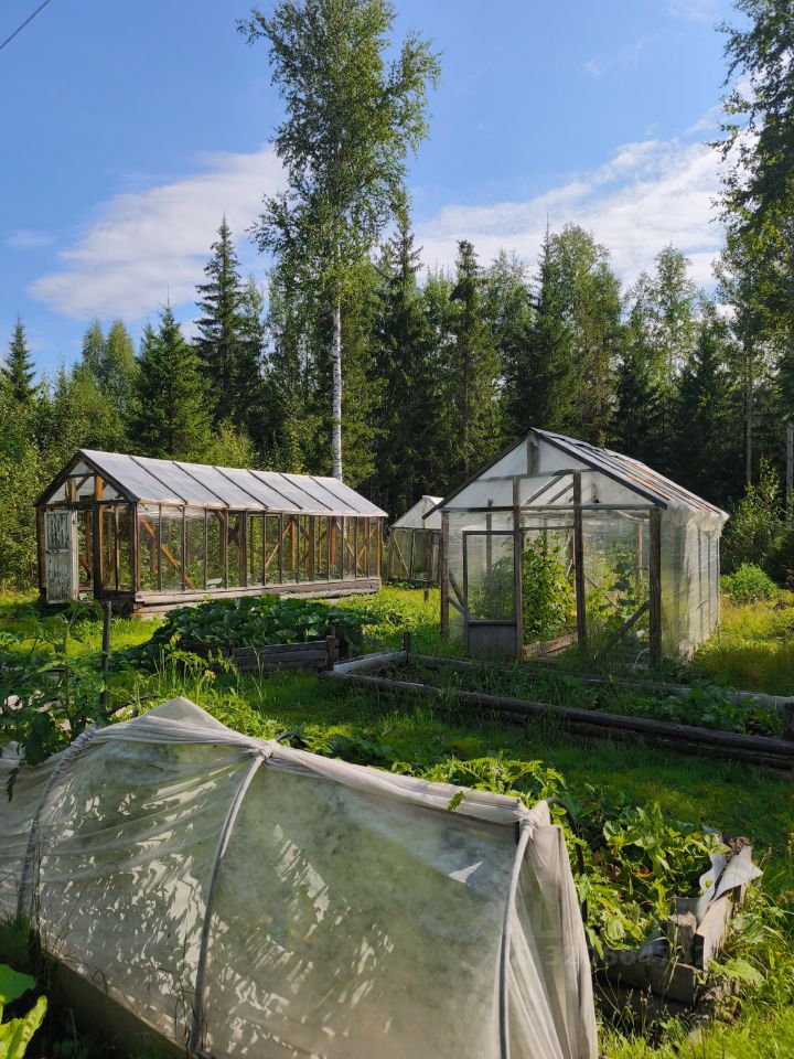 На втором участке строится домик, в нем можно ночевать и летом и зимой. Стройматериалы и некоторые инструменты остаются будущему собственнику. Кроме электричества есть солнечная панель. Есть 3 теплицы, одна стеклянная и две плёночные. 6 кустов смородины, 2 крыжовника и 3 молодых дерева вишни. Грядки с клубникой. Завезена хорошая земля для грядок. На участке есть водоемчик используется для полива. Есть сруб для бани.