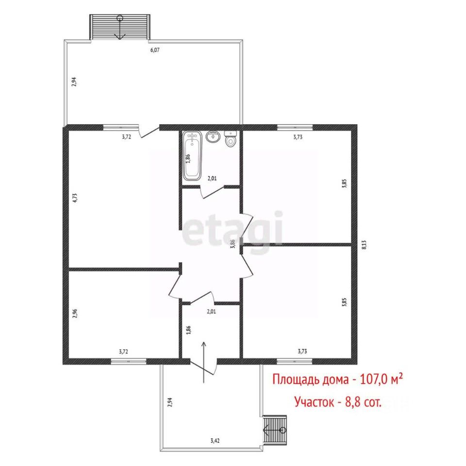 Площадь дома указана по наружному периметру, с учетом террасы и веранды.