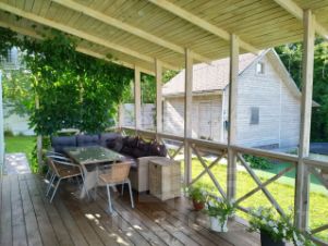 Уникальное предложение - продам современный благоустроенный дом с мебелью и техникой. В доме 2 этажа,6 изолированных комнат, общая площадь дома 125 м2, зарегистрирован в Росреестре в 2020 году; земельный участок 10 соток. Категория земель: земли населенных пунктов. Разрешенное использование: ИЖС. В дом заведен газ, отопление (газовый котел), водоснабжение центральное(холодная вода),электричество (двух тарифный счетчик), канализация - септик. Фундамент - ленточный, внешние стены - твинблок+утепление мин.плита + декоративная штукатурка; внутренние стены - твинблок и гипсокартон; крыша - мягкая черепица. Внутренняя отделка: на полу - ламинат, натяжные потолки с встроенными светильниками; два сан.узла в кафельной плитке, коллекционные обои, пластиковые стеклопакеты. На 1 этаже расположена просторная терраса с освещением, площадь 30м2, выход из гостиной комнаты. На участке новая баня 4м 4м из бруса, вода заведена; теплица 3м 6м, отдельно стоящий гараж 5м 8м. Территория выложена тротуарной плиткой, посажены плодовые деревья и кустарники, есть небольшой участок леса с маленькими соснами. Около дома расположена детская площадка. Подробности по телефону.
