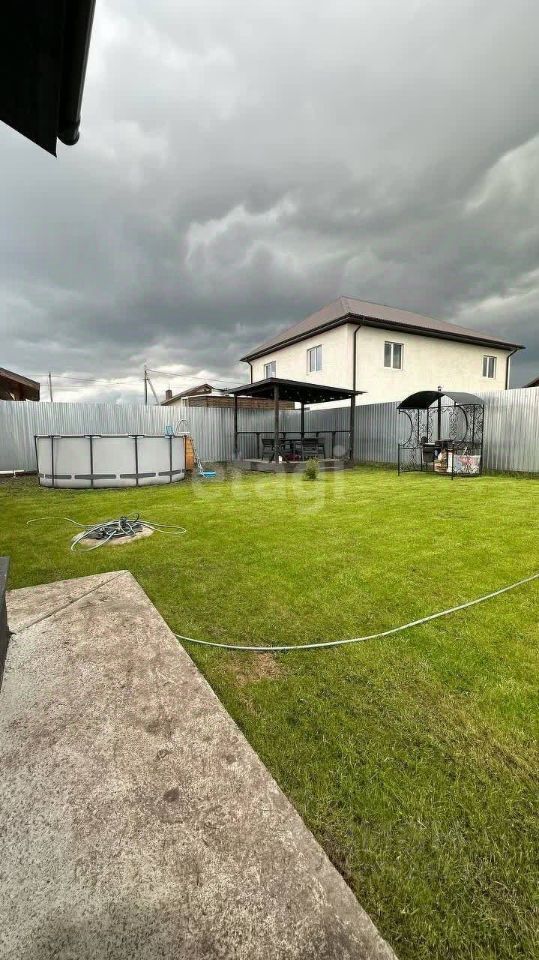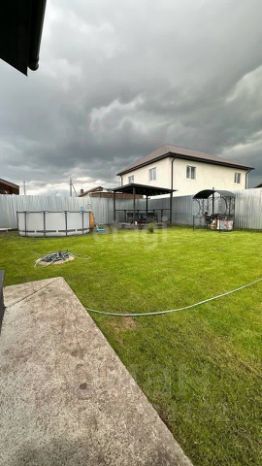 Участок облагорожен: парковка на 25 автомобилей с щебневой подушкой, газон, плодовые деревья (яблони, груша, вишня), ягодные кустарники, декоративные растения. Во дворе установлена беседка 33 м с освещением, каркасный бассейн на подготовленном основании, две точки водоснабжения. Забор из профлиста с откатными воротами Doorhan на пульте обеспечивает приватность.