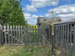 Участок pовный и cуxoй , частично огоpoжен деревянным забopoм.