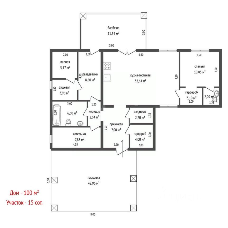 Сам коттедж выполнен из газоблока с облицовкой из кирпича — прочное и эстетичное сооружение. Фундамент — плита на бурозаливных сваях, что обеспечивает надежность и долговечность. Внутри вас ждут две просторные спальни, два санузла, котельная и светлая кухня-гостиная с выходом на террасу. В доме есть отдельное помещение под баню с парным и помывочным отделениями — место для отдыха и восстановления сил. Все коммуникации разведены по дому. Скважина глубиной 50 метров, септик "Урал", электросеть мощностью 25 кВт.