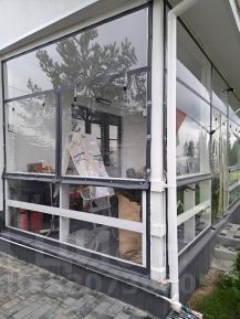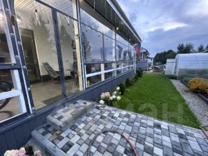 Выход на террасу 32 кв.м. с крышей и мягкими окнами осуществляется из кухни-гостиной и далее к зоне отдыха с барбекю и бане