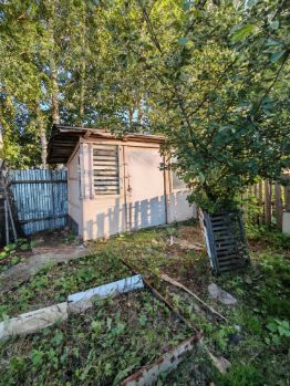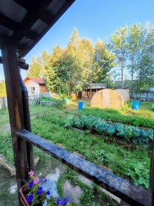 Участок ровный, прямоугольной формы, огорожен по периметру забором. Разработан, ухожен. Плодоносящий сад. Три теплицы, новая баня, хозяйственные постройки.