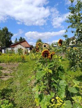 На участке расположены две просторные теплицы, баня-бочка, постройка для хранения инвентаря, недостроенный гараж из кирпича и мангальная зона. Участок радует глаз ухоженными грядками и множеством плодородных кустарников и деревьев. Санузел расположен на улице.