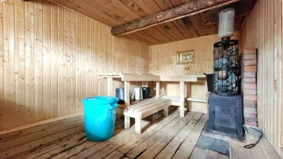 Участок прямоугольной формы, на котором растут яблони, груши и смородина. На территории расположена вместимая баня из бревна, оборудованная печью, которая быстро нагревает и долго сохраняет тепло. Вода в бане подключена.