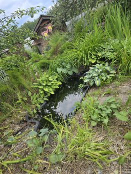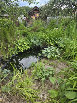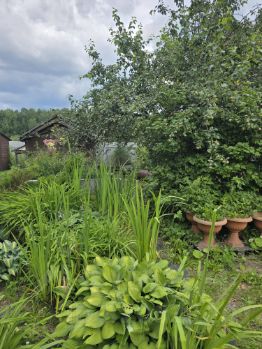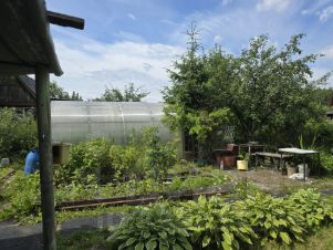 На участка 2 груши, 3 яблони, крыжовник красный, жёлтый, чёрная смородина, малина желтая, красная, ежевика, слива.