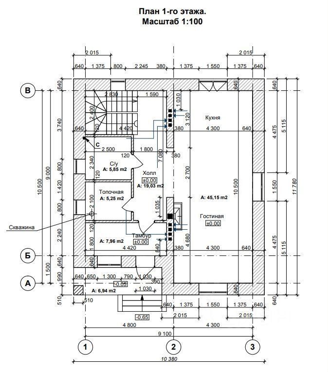 Внутри есть просторная гостиная, кухня, две спальни, детская комната и две ванные комнаты.